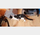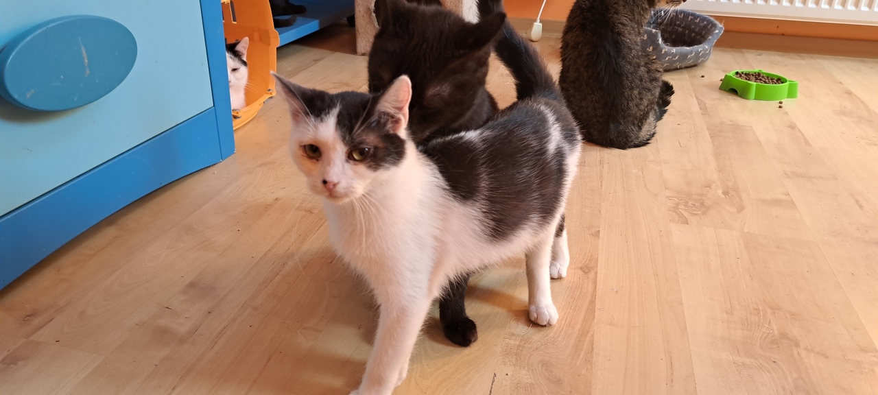 Pysio trafił do nas z mamą i rodzeństwem. Kotka nie byla absolutnie dzika, nieco wystraszona, ale dosłownie po kilku dniach nabrała zaufania do nowych opiekunów i ochoczo przybiegała pchając się na kolana głośno mrucząc. czyżby ktos pozbyl sie problemu skazując maluchy na głód, bezdomność i cierpienie? Pysio jest najmniejszy z całego rodzeństwa, ale też najszybciej otworzył swoje kocie serduszko na człowieka. Z początku był bardzo nieufny i bojaźliwy, ale z dnia na dzień zaczął robić ogromne postępy, już daje się głaskać i nawet przy tym mruczy. Kocurek jest młodziutki, ciekawski, energiczny, z początku boi się wszystkiego, ale potrzebuje czasu, żeby się oswoić. Do psów jest w stanie się przekonać, tylko potrzebuje chwili na przyzwyczajenie się. Pysio to naprawdę fantastyczny koci młodzieniec, który bardzo potrzebuje miłości i poczucia bezpieczeństwa, żeby mógł zrozumieć, że człowiek może być dobry. Z dnia na dzień widzimy jego ogromne postępy, coraz śmielej podchodzi do człowieka. Kocurek bez problemu korzysta z kuwety i umie zachować czystość. Najlepiej czuje się w towarzystwie innych kotów, więc jest idealny na dokocenie, bądź adopcje w dwupak. Absolutnie nie nadaje się na jedynaka.