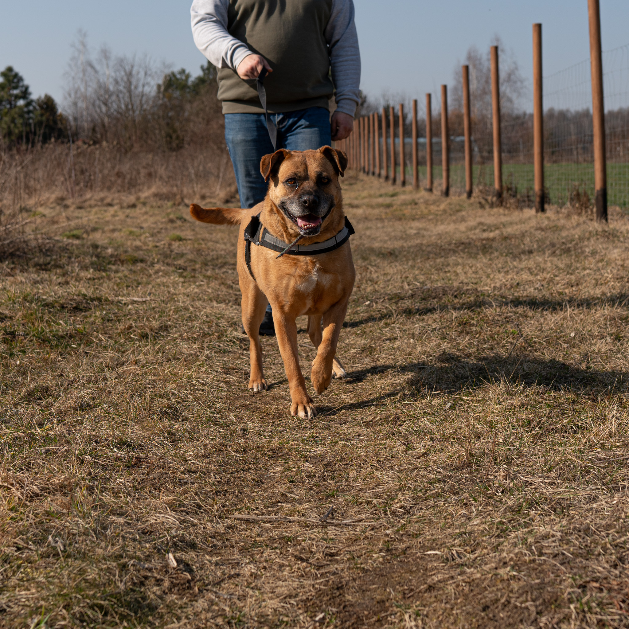 Bardzo szybko się przywiązuje. Ładnie chodzi na smyczy.