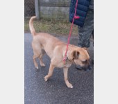 Aza to młoda suczka w typie molosa. Mimo trudnego życia, ma bardzo przyjacielski charakter.