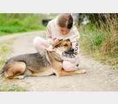 Słabo chodzi na smyczy, nie jest za wiele nauczony gdyż od maleńkiego szczeniaczka mieszka w schronisku.
