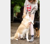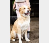 Uważamy, że może mieć około 4-5 lat. Jest psem o dużych gabarytach.