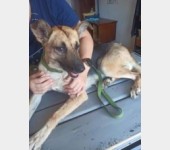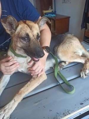 Chita to 3 letnia sunia w typie owczarka niemieckiego, która przyjechała do przytuliska z Nikopola. W sunię trafił odłamek pocisku, pozbawiając ją oczka i raniąc w głowę. Sunia jest niezwykle przytulasna, kocha człowieka, uwielbia być głaskana.