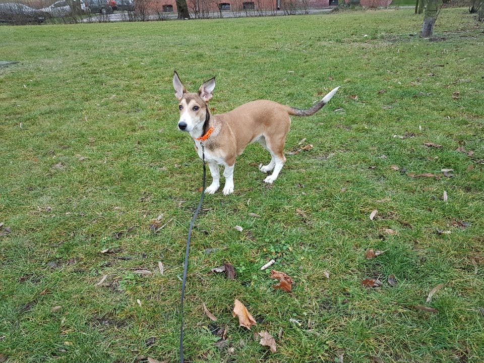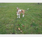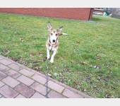 Cleo razem z ósemką rodzeństwa i matką była wyrzucona na wsi. Urosła na piękną, bardzo mądrą sunię. Sprytna dziewczyna lubi zabawy i spacery. Umie chodzić na smyczy. Cleo jest odrobaczona, odpchlona, zaszczepiona, zaczipowana. Ma ok. 8 miesięcy.