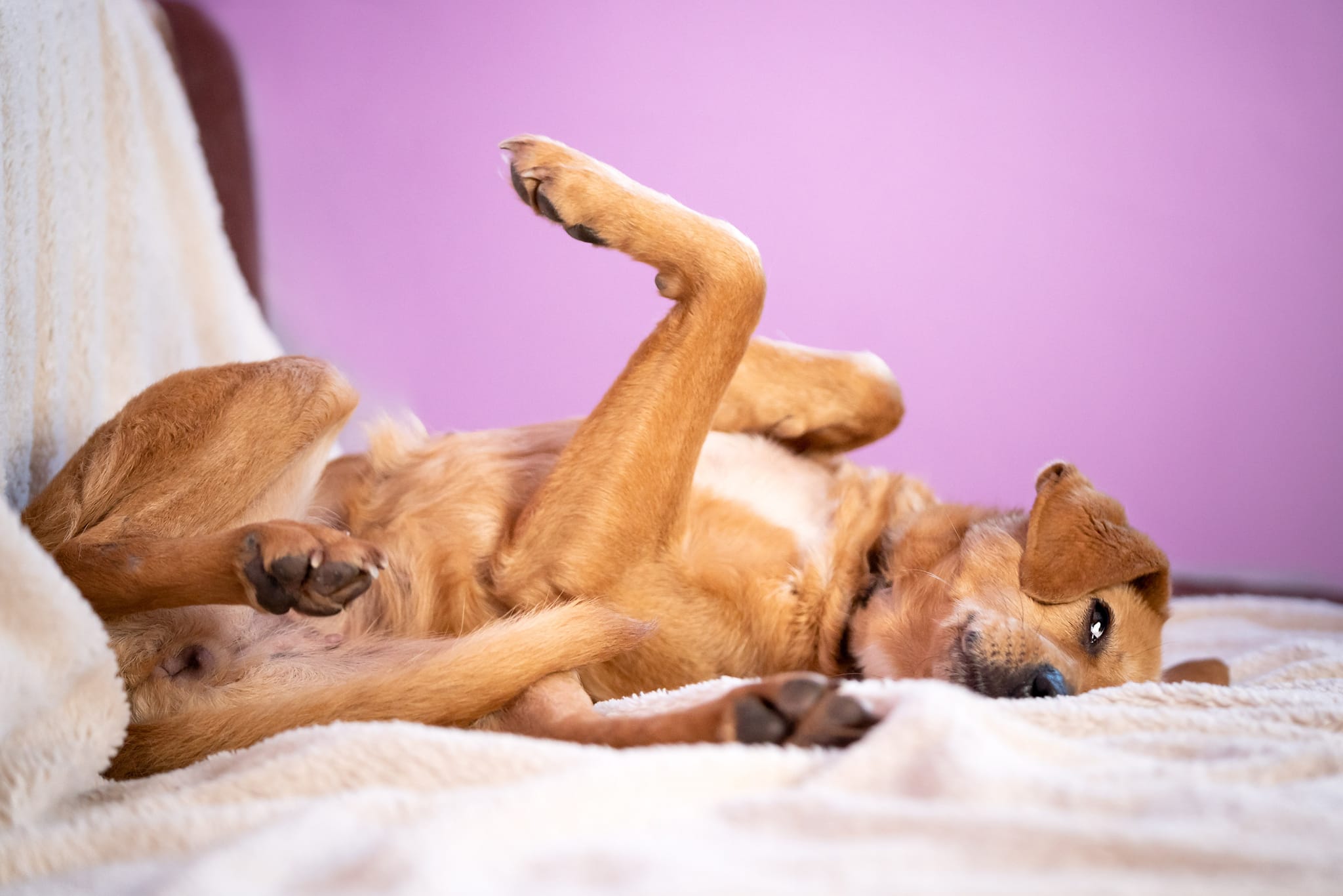 Sunia jest zmęczona życiem jakie miała. Teraz nie może się nacieszyć tym ze może spać na łóżku i jak mały szczeniak turla się i ociera na przemian o łóżko I o nas dopominając się pieszczoty.