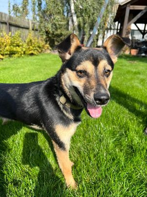 Dilya to młody chłopiec, ur. 22.06.2022 , który docelowo będzie średnim psiakiem. Przyjechał ze wschodniej części Ukrainy z terenów walk. Miał zranioną tylna łapkę, która już się zagoiła.