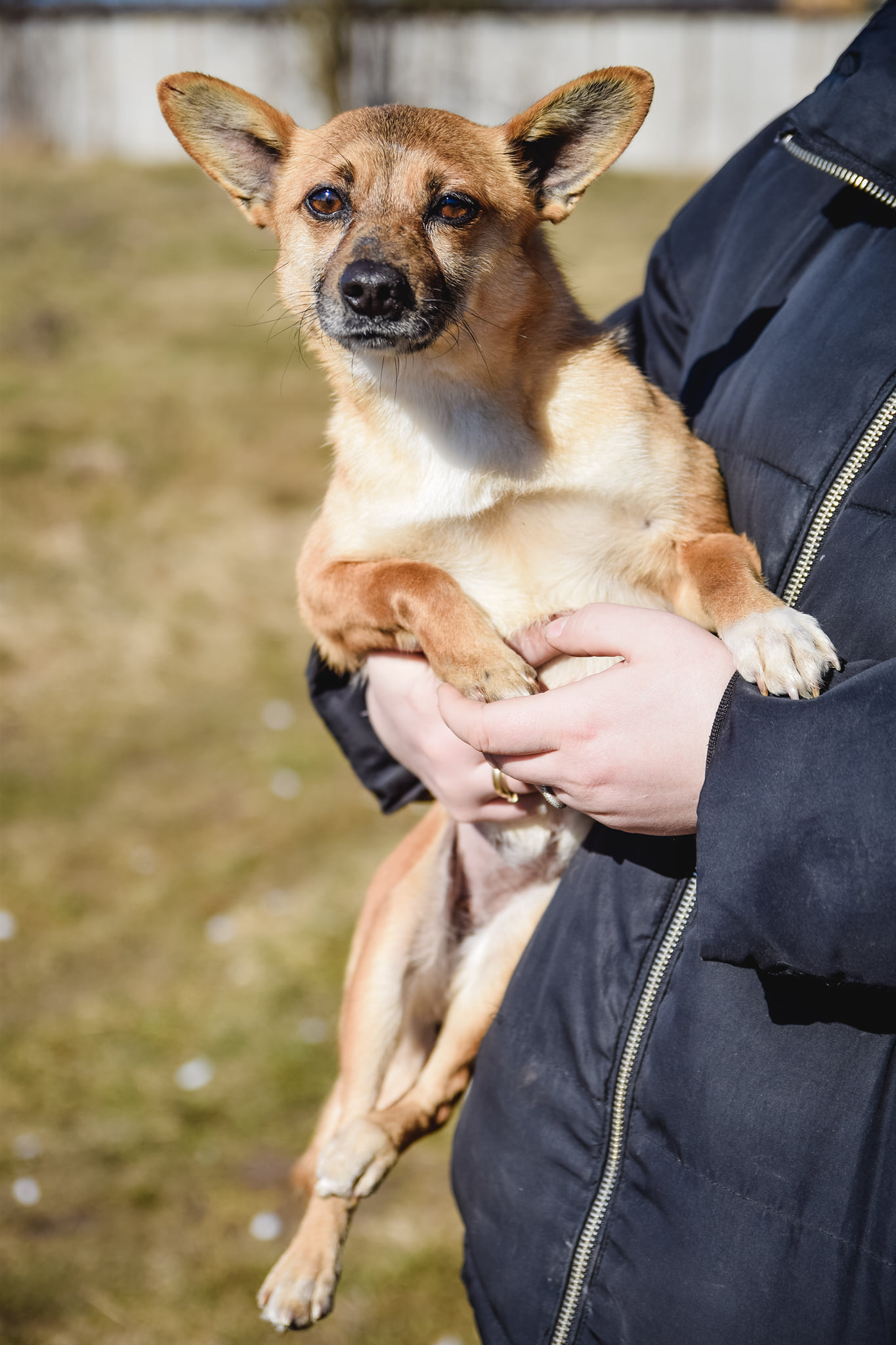 Dziewczynka przy pierwszym kontakcie jest trochę wycofana, ale po kilku minutach daje się pogłaskać.