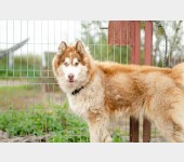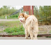 Malamut cieszy się na widok człowieka, skacze, daje się głaskać, jednak nie jest do końca pewny.