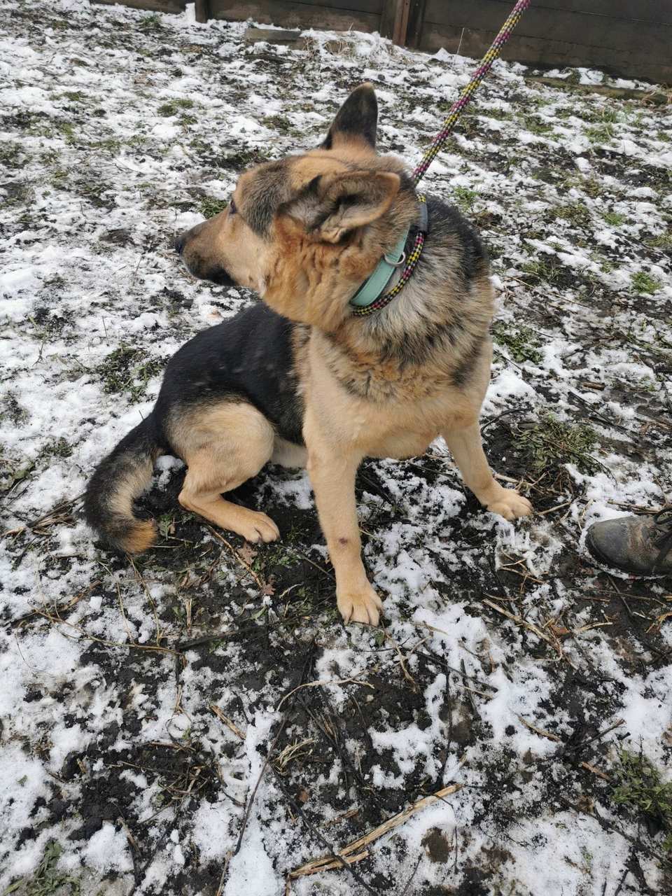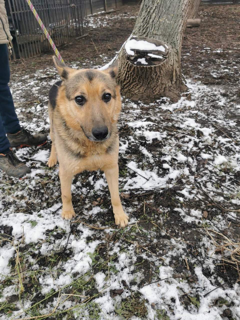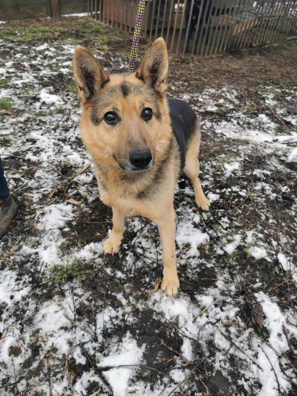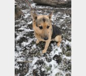 To 11 -letnia psinka wielkości mniejszej nieco od owczarka niemieckiego, który przyjechał do przytuliska wiosną 2022 roku po śmierci właściciela.