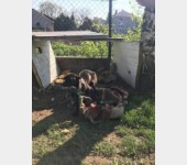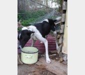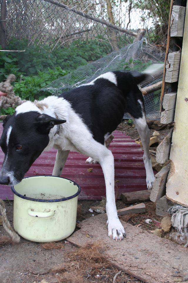Dziś obie sunie oraz szczeniak są z nami. Powoli przyzwyczajamy je do normalnego jedzenia. Staramy się przekonać je, że ich nie zostawimy, że nie zagłodzimy. Możemy się tylko domyślać, o czym teraz myślą, co przeżywają. Większa (do kolan) z suń- Aza jest zaborcza, broni dostępu do miski. Może mieć około 5 lat. Mniejsza (przed kolano)- 4letnia Krówka jest bardzo spragniona kontaktu z człowiekiem, głaskania i przytulania. Szukamy dla nich domów tymczasowych lub stałych, które wynagrodzą im stracone lata i pomogą w procesie rekonwalescencji.