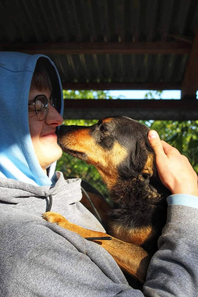 Kiedy wejdzie się do jego boksu nie odstępuje człowieka na krok. Najchętniej cały czas by się przytulał... dlatego tak trudno jest przerwać te czułości i wrócić do dalszej pracy.