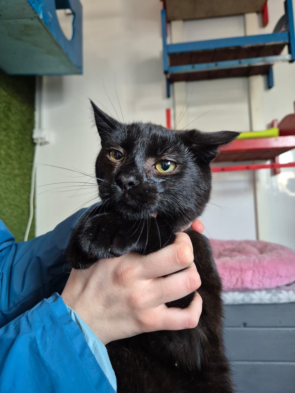 W schronisku zupełnie się nie odnajduje, stroni od kontaktu i chowa się przed nowymi osobami. Ale jest w nim coś wyjątkowego. Gdy już ktoś go przytuli, posadzi na kolanach i zacznie głaskać… powoli się odpręża, a po chwili zaczyna cicho mruczeć. Jest w nim potencjał na cudownego kota – potrzebuje tylko czasu, cierpliwości i ciepłego domu, w którym poczuje się bezpiecznie.