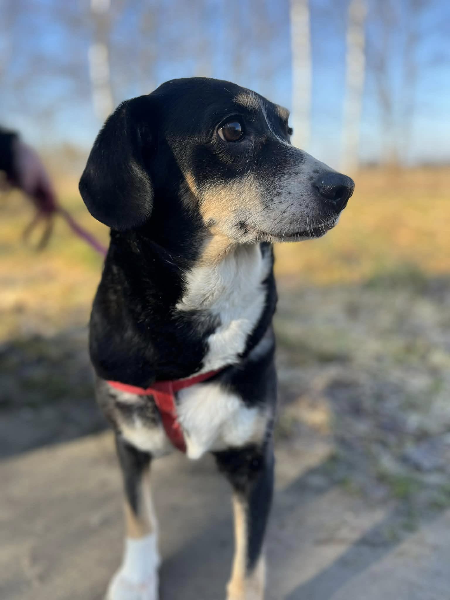 Lubi koty, ludzi i wszystko dookoła. Przepięknie chodzi na smyczy.