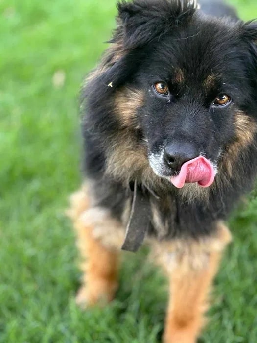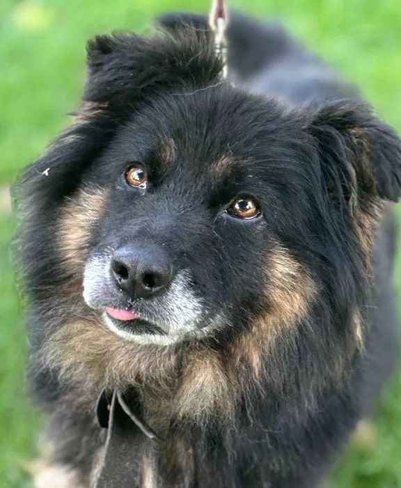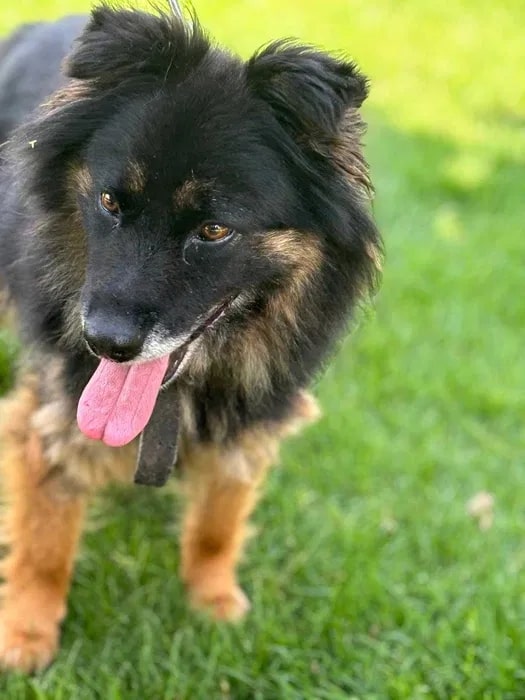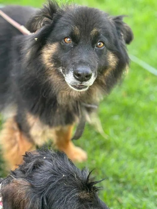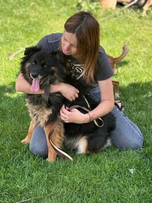 Krzysia to 7 letnia sunia, o wadze 13 kg, która wraz z innym psiakiem biegała związana łańcuchami na terenach wiejskich. Oboje zerwali się z łańcucha.
