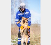 Dość ładnie chodzi na smyczy, raczej nie wchodzi w konflikty z psami, choć potrafi być zaborczy przy misce.