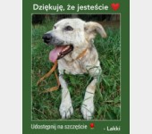 Laki, sunia która żyła na ulicy, w Ukrainie, w miejscu, gdzie znieczulica i sadyzm panują nierozłącznie, sunia żyła w brudzie, głodzie, i chłodzie, bez opieki, z nużycą, chorobą skóry którą na szczęście udało się zwalczyć. Ostatecznie Laki dzięki wpłatom darczyńców mogła przyjechać do Polski do hoteliku Psia Forteca Hotel dla Zwierząt i ma tam wspaniałą opiekę.