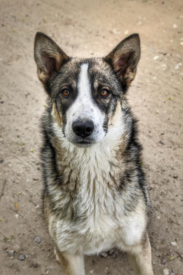 To cudowny psi chłopiec w wieku około roku. Jest w typie husky, jednak podejrzewamy, że już niewiele urośnie. Raczej przybierze masy.