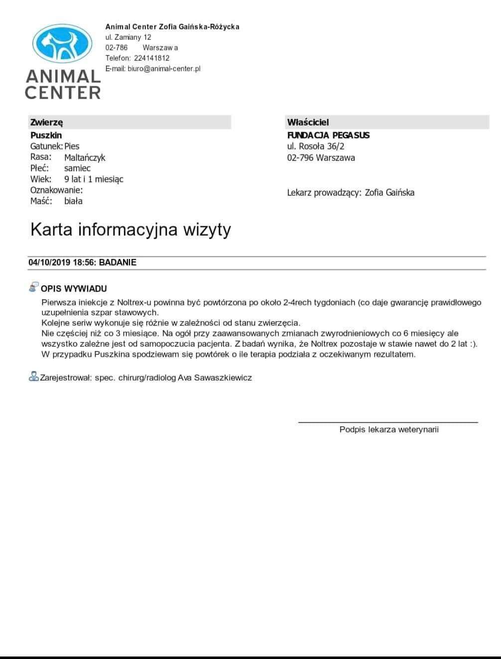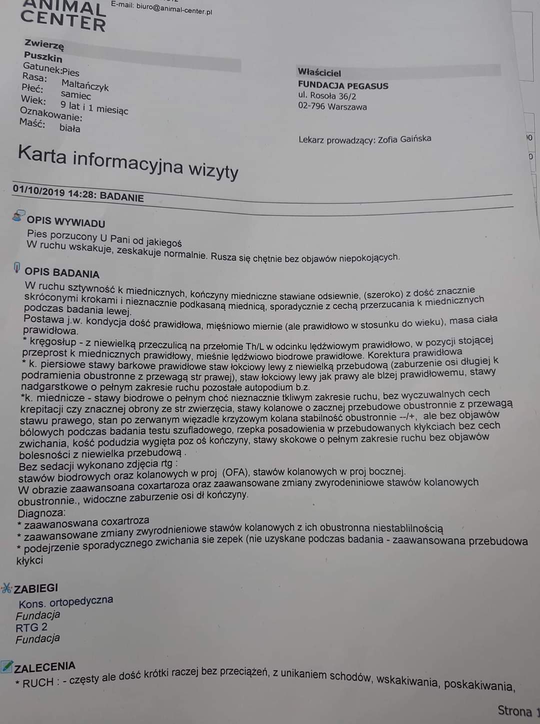 Puszkin został wykastrowany, ma usunięty kamień z zębów, kilka stracił, zrobione USG jest też po konsultacji u ortopedy. Konsultowany był u dwóch ortopedów w Animal Center w Warszawie i w Legwet w Legionowie. Opinie były takie same i jednoznaczne...