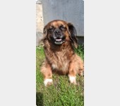 Piesek ma 6 lat, jest bardzo przyjazny i łagodny.