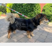 Akceptuje suczki, z samcami w miarę się dogaduje. Stosunek do kotów nie znany ale możemy sprawdzić. Chodzi na smyczy.