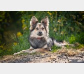 Lazur to ok.1,5 roczny psiak. Jest drobnej budowy, waży ok.9 kg. o pięknym długim futerku. Ma niesamowte oczy- jedno niebieskie, a drugi brązowe.