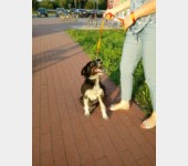To niewielki pies sięgający do połowy łydki, waga około 10- 12 kg, wiek około 5 lat.