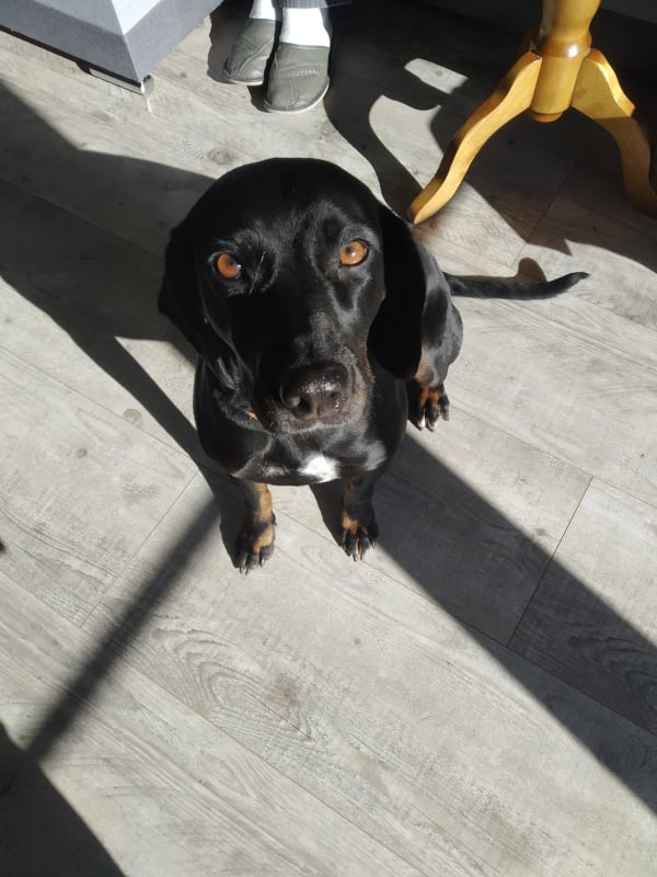 Mora to gończy polski, ma 5 lat, jest wysterylizowana. Bardzo przyjazna dla dzieci (dzieci mogą z nią zrobić wszystko - jak ma dość po prostu idzie do swojego kojca), dogaduje się z innymi psami (nie jest agresywna), stosunek do kotów nie jest znany. Jest pod stałą opieką poradni weterynaryjnej, ma wszystkie aktualne szczepienia. Bardzo łagodna, potrzebuje dużo ruchu.