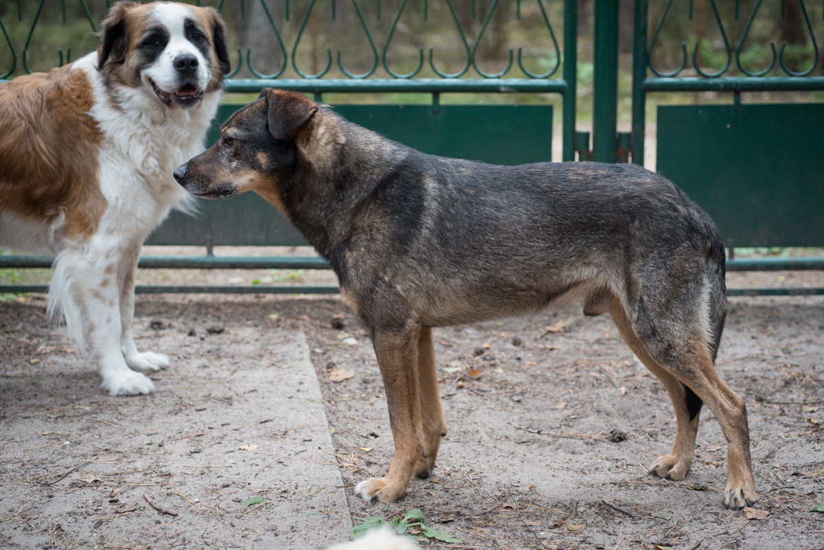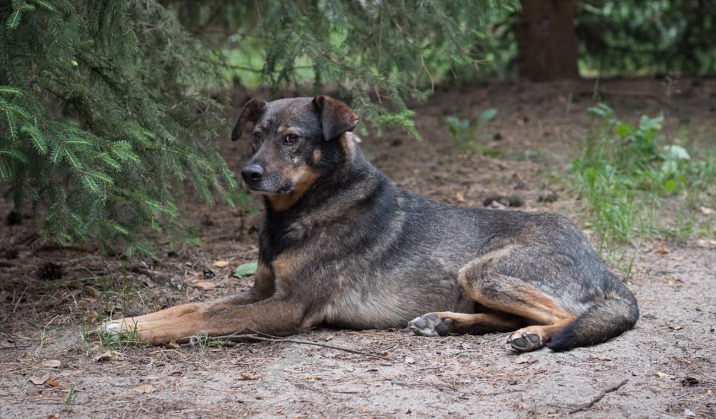Pies po przejściach, z ranami na tylnych łapach aż do kości. Nie wiadomo po wypadku czy też pogryzieniach. Chudy i wystraszony, po prostu kupka nieszczęścia.