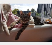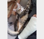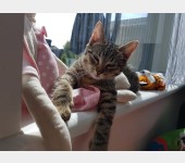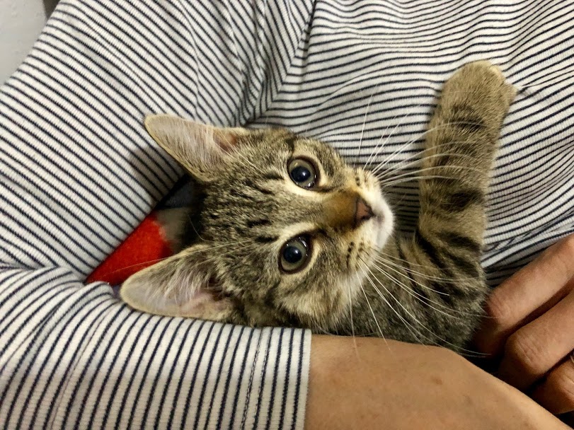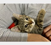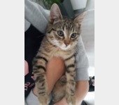 Poziomka musiała mieć wcześniej kontakt z ludźmi: jak tylko została zabrana na ręce traktorek głośno poszedł w ruch. Malutka przez pierwsze dni w klatce głośno płakała, tak bardzo nie chciała być sama. Teraz już zaakceptowała sytuację i cichutko, pełna nadziei czeka na dyżury wolontariuszek, które są najważniejszym momentem jej dnia dnia. Ukochane zabawki to wszelkiego rodzaju myszki i piłeczki. Koteczka uwielbia się przytulać oraz być głaskana, rozpływa się wtedy ze szczęścia. Bardzo lubi dawać buziaki okazując Ciociom swoją miłość. Tygrysek szuka kochającego domu z innymi młodymi kotami chętnymi do wspólnych zabaw.