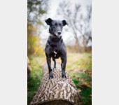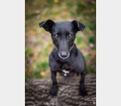 Marusia jest niewielką, sięgającą przed kolano suczką - trochę jamnikowatych gabarytów, tzn. dłuższa niż wyższa. Ma koło 3/4 lat.