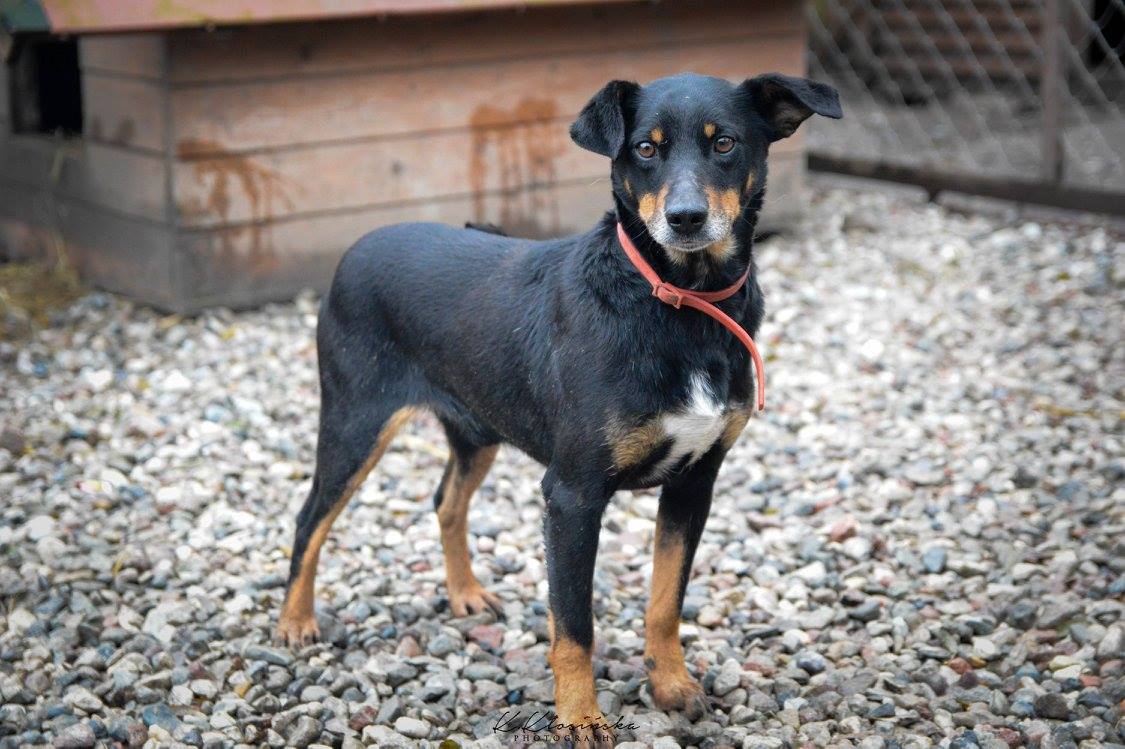 Puszek to średniej wielkości, około 6 letni pies. Trafił do naszego schroniska po jednym z telefonów, iż od kilku dni błąka się, nikomu nieznany pies.