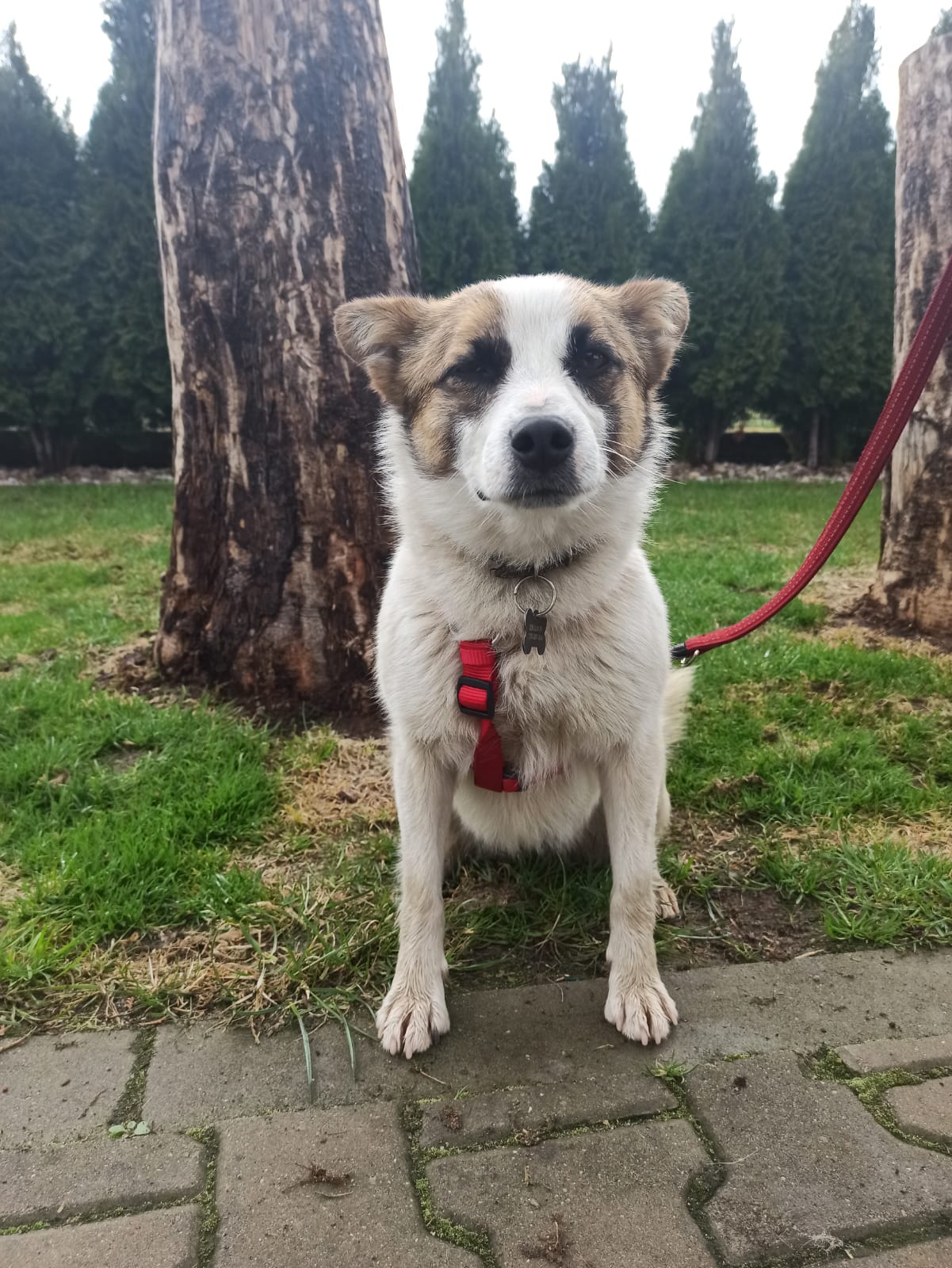 RENIA to około 2/ letnia sunia która waży 15 kg. Chodzić na smyczy. Jest sunią troszkę wystraszoną, boi się gwałtownych ruchów. Toleruje inne psy które są uległe, sama jest psem dominującym.