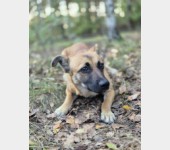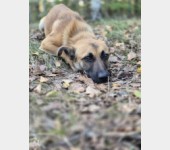 To młoda psinka o wystraszonych oczkach - został zabrany od człowieka, który go bił.