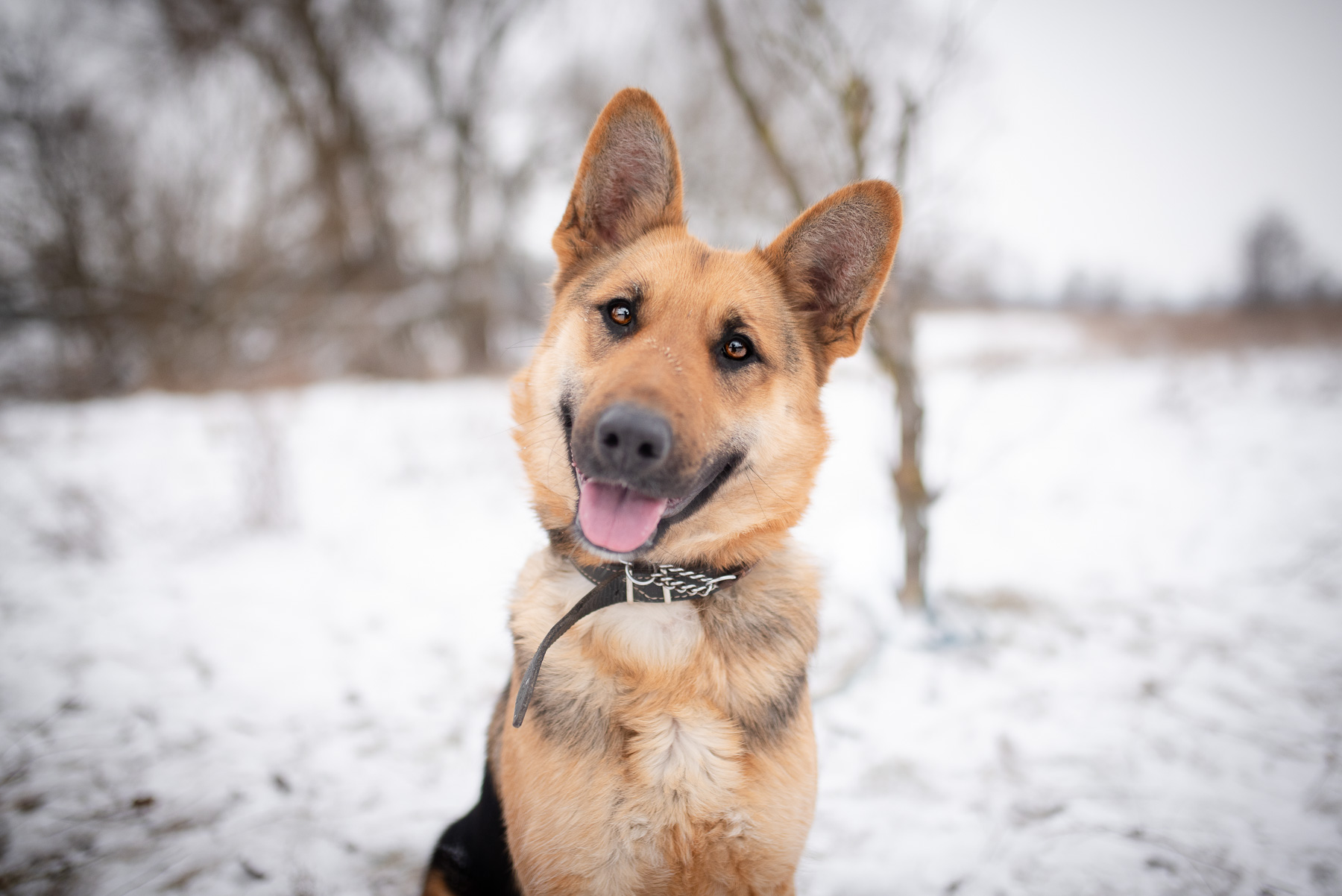To młoda sunia, w typie owczarka, która ma w sobie mnóstwo pozytywnej energii i ciekawości świata.