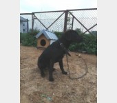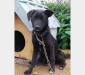 Hades jest bardzo młodym około 7 miesięcznym psem, chudy, ma problemy z tylnymi łapami, lewe ucho przecięte prawie na całej długości, ma bardzo dziwny kształt głowy, patrząc na niego wydaje się go boli. Jest bardzo przestraszony, podchodzi i łasi się spragniony pieszczot, jednocześnie sika ze strachu.