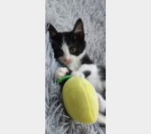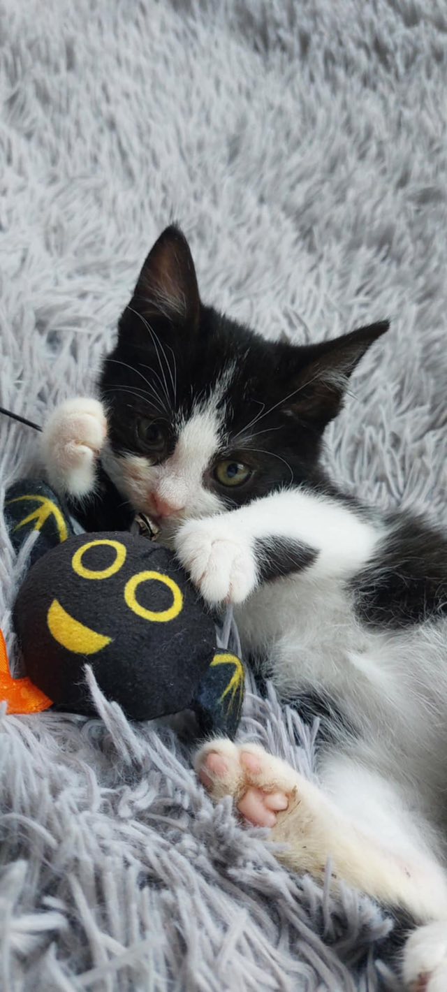 Obecnie przebywa w domu tymczasowym u jednej z naszych pracownic, tam uczy się kociego życia i… idzie mu doskonale!