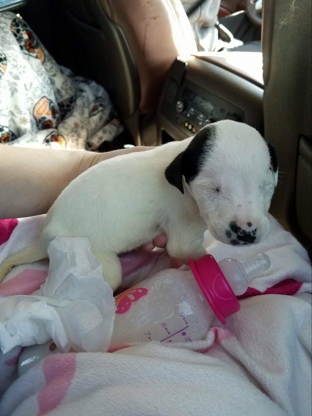 Szczeniaczki wyglądały jakby miały tydzień, góra dwa. Są tak bardzo wychudzone i niedożywione. Po wnikliwych oględzinach okazało się, że są trochę starsze i mają niecałe 4 tygodnie.