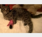 Około 7 tygodniowe kocie znalezione w rowie. Nie wiem skąd się wziął, czy ktoś go przywiózł i wyrzucił, czy sam się przybłąkał. To nie istotne, ważne jest to, że kolejne kocie dziecko zostało porzucone na pastwę losu. Jest to kocia dziewczynka. Mały burasek, to wielki przytulas, niestety jest chory. Wychudzony (wystające kości miednicy, kręgosłupa, kosteczki obleczone skórą), wyziębiony, ogromny brzusio, biegunka, co najmniej 2 guzy na wątłym ciałku, brak apetytu, sierść miejscami pozlepiana, sfilcowana, ogólnie w złym stanie ... Nie wiem co jeszcze ... Maluch będzie diagnozowany w czwartek, chyba, że jego stan się pogorszy, to będę szukała pomocy dla kociaka jutro. Ciągle zadaje sobie pytanie : dlaczego te małe, bezbronne zwierzaki muszą tak cierpieć? Co zrobiły, że już na starcie swojego życia muszą walczyć o każdy kolejny dzień? Kociak znaleziony w okolicy Krakowa, proszę o pomoc w jego leczeniu i za każdą złotówkę najmocniej dziękuję.