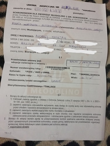 NA LECZENIE ADOPCIAKA ZE SCHRONISKA