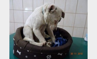 Szczeniak zamarzł zostawiony w kartonie
