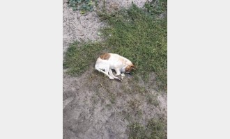 Biedny, zagłodzony i zniszczony pies, ledwo chodzi