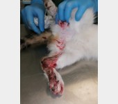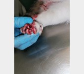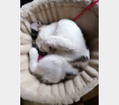 Kajtek nie miał łatwego życia. Znaleźliśmy go w pudle. Był w dramatycznym stanie. Najmniejszy i najsłabszy że stada... a mimo to najbardziej się łasił i lgnął do człowieka. Przez koci katar pękło i wypłynęło mu oczko. Wymagał opieki, zakraplania, masowania. Postanowiliśmy, że zostanie u nas, w domu tymczasowym, na stałe. Kiedy podrósł wymagał dwóch operacji: oka oraz migrującego jądra. Przeszedł je całkiem niedawno. Teraz znów uległ wypadkowi...