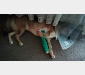 Obecnie Leoś jest po operacji łapy przedniej lewej co ilustrują zdjęcia.