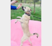 Dobrze dogaduje się z innymi psami, nie wiemy jak z kotami.