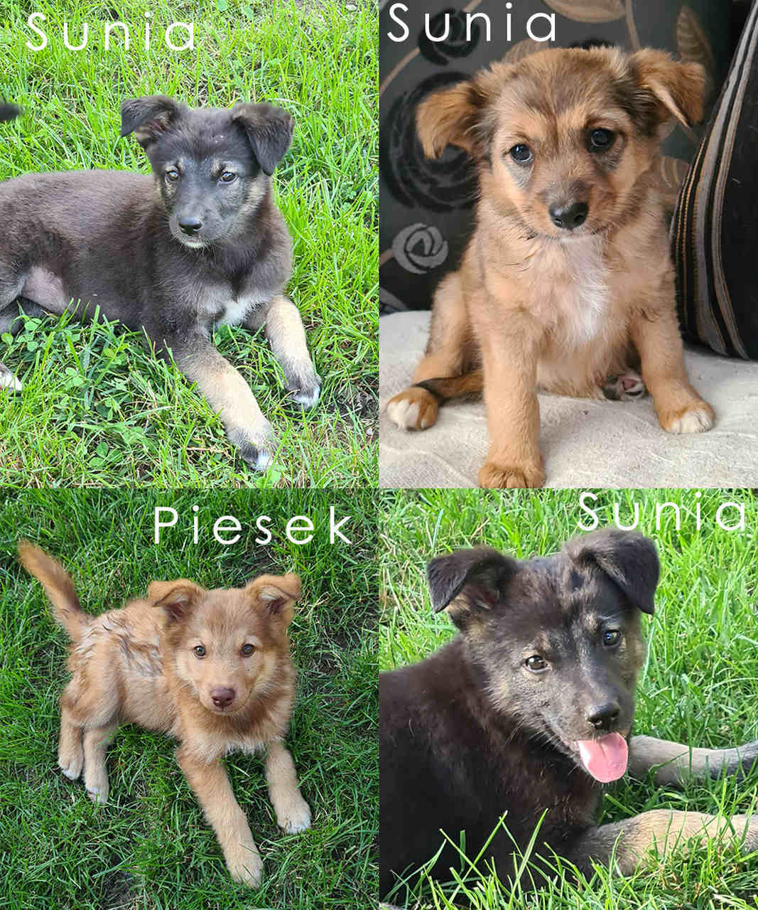 3 sunie i jeden piesek w wieku ok. 9 tygodni szukają domów. Będą raczej średnimi pieskami. Są wesołe, chętne do psot i zabaw. Czekają na dom w psim hoteliku.