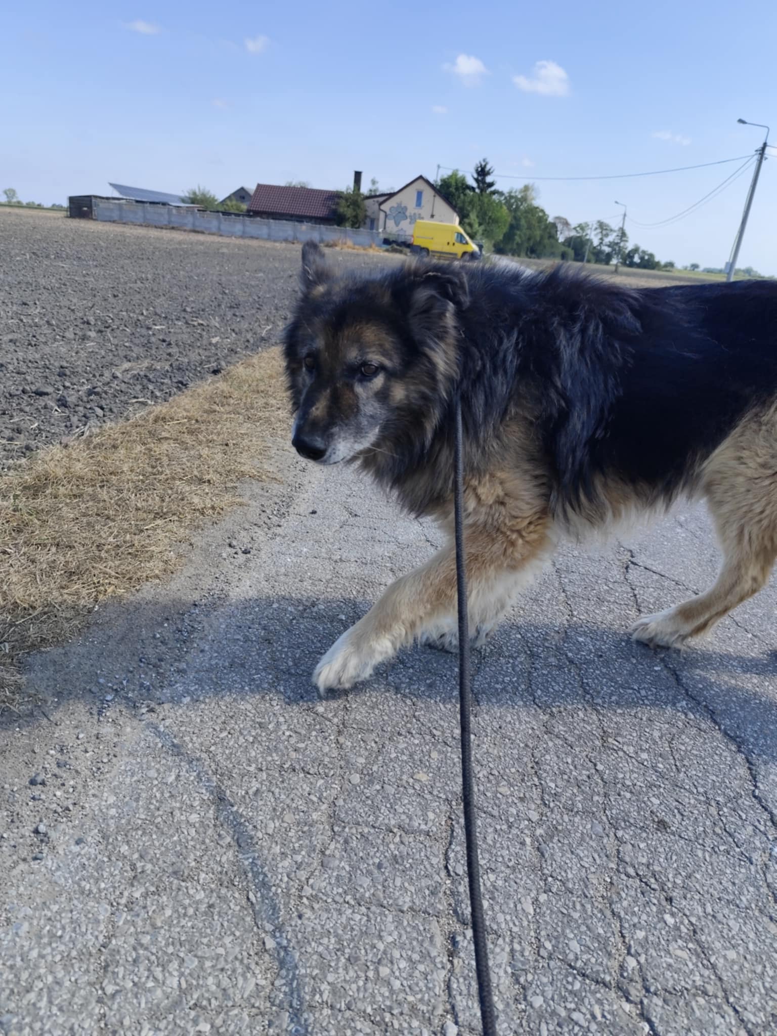 Aron to starszy pies w typie owczarka, który błąkał się bardzo długo. Trafił do gminnego kojca, a stamtąd do Schroniska.