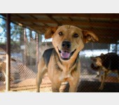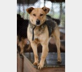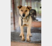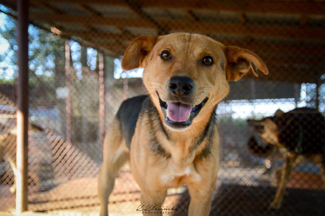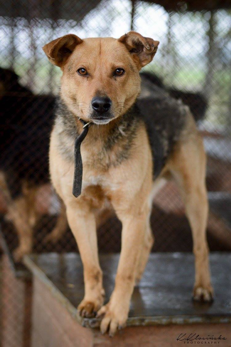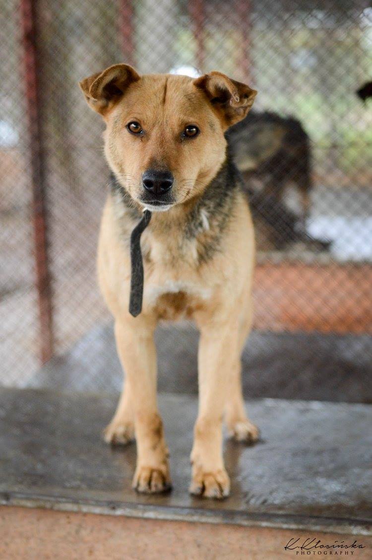 Aron to około 4-5 letni, średniej wielkości pies. Trafił do schroniska z okolicznej wioski, gdzie został znaleziony. Na sobie miał długi kawałek łańcucha i rozcięte ucho. Jaki były jego losy? Niestety nie wiemy.