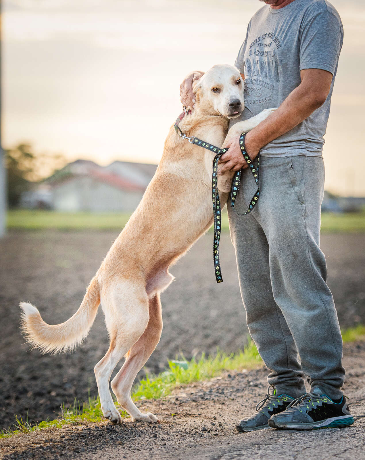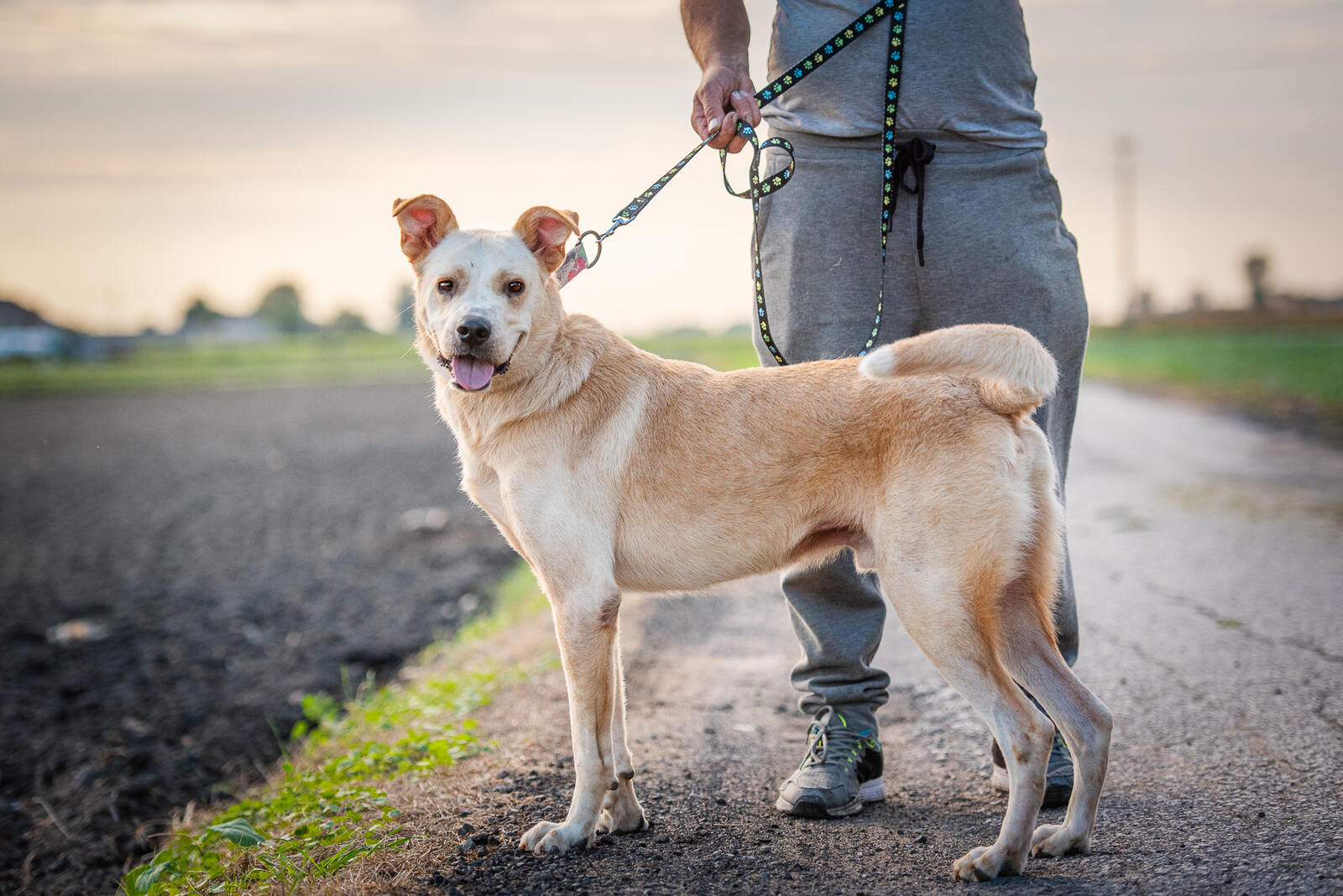 Ładnie chodzi na smyczy, jest inteligentny, wesoły, chętnie eksploruje teren ale to właśnie człowiek jest jego priorytetem. Nie ma problemu z obcymi, każdy na dwóch nogach jest od razu jego kumplem :)