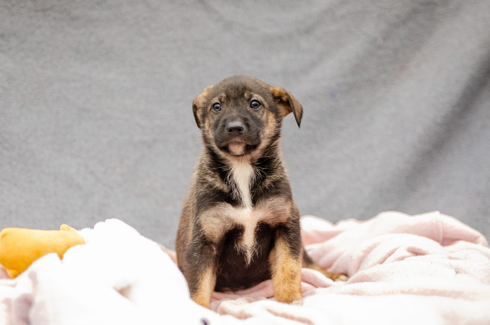 BEMOL trafił do schroniska odebrany interwencyjnie razem z matką i 4 rodzeństwa.