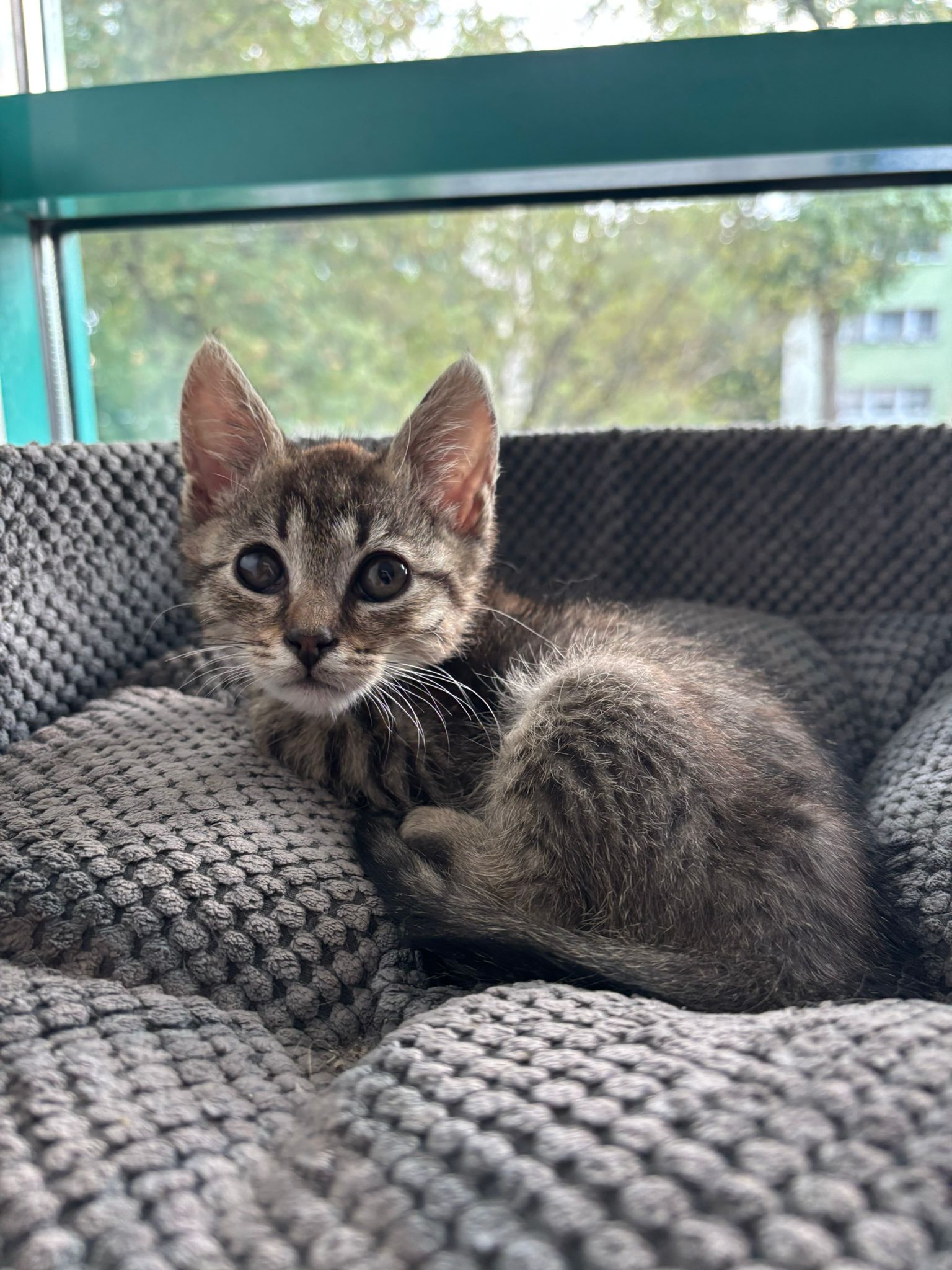 Kliper - uroczy, bury kocurek urodzony w maju 2025 roku.Los nie był dla niego łaskawy – przez ciężki koci katar stracił jedno oczko, a drugie jest w trakcie diagnozy. Ale wcale go to nie zatrzymuje!