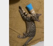 Bigosik lubi zabawy wędką, nie pogardzi też zwyczajnym kawałkiem papierka - ze wszystkiego zrobi sobie zabawkę. Najlepiej spędza mu się czas na mięciutkich posłaniach, albo na człowieku. Kuwetkuje już prawie bezbłednie.